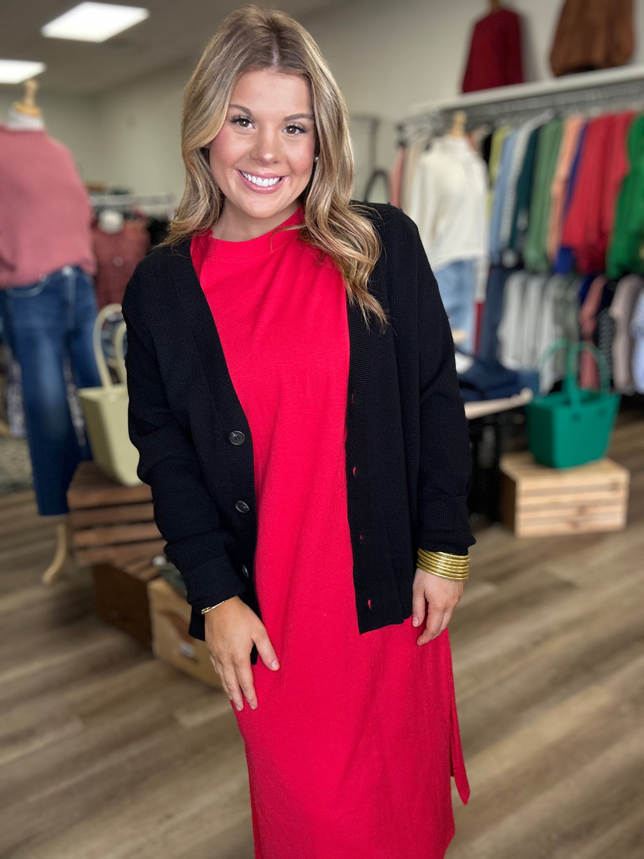 Get ready to blossom in our Floral Cranberry Dress! This button front dress features a gorgeous floral pattern in a rich cranberry hue. Perfect for any occasion, add some fun...